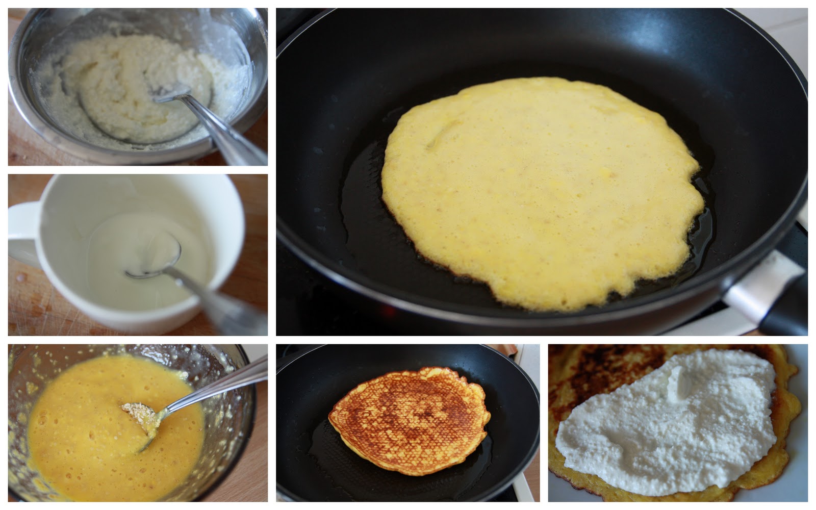 Wszystkie składniki mieszam mikserem. Nagrzewam patelnię i na gorącą leję porcję ciasta rozprowadzając po całej patelni. Po minucie powinno już odchodzić i można poruszać naleśnikiem. Smażę z obu stron i powtarzam do skończenia masy :)