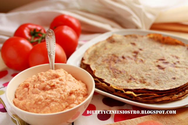 Naleśniki smażymy według uznania - z tłuszczem lub bez. Ja tym razem dałam trochę oliwy spod pomidorów.