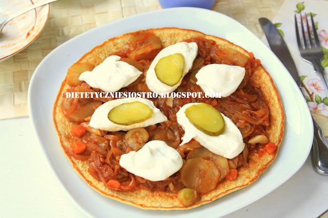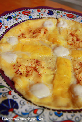 Jajka rozkłócić ze sobą i z pieprzem i solą i wylać na gorącą patelnię z nieprzywierającą powłoką. Na wierzchu ułożyć fasolkę i przykryć na 2-3 minuty. Po tym czasie posypać wierzch suszonymi pomidorami i smażyć tak długo aż wszystko się zetnie. Podawać ze słodkim pomidorem - pomidory w tym omlecie przełamują ostrość piperyny. Fasolka również jest lekko słodka, więc całość jest dobrze zbalansowana i smaczna :)